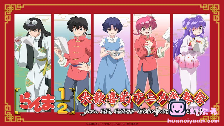 根据高桥留美子原作改编的TV动画《乱马1/2》将举办“大欢喜动画发布会”活动,活动细节已公布。该活动原定于“AnimeJapan 2025”期间举行,将于2025年6月22日19:00在东京新宿BALT9举行。活动将邀请为早乙女乱马配音的山口胜平、为乱马配音的林原惠美、为天道阿康配音的日高法子、为洗发水配音的佐久间玲等声优出席。活动包括现场配音、对话环节,并将提前放映动画第二季的部分内容。活动现场还将销售活动限定商品,入场观众将获赠节目手册。